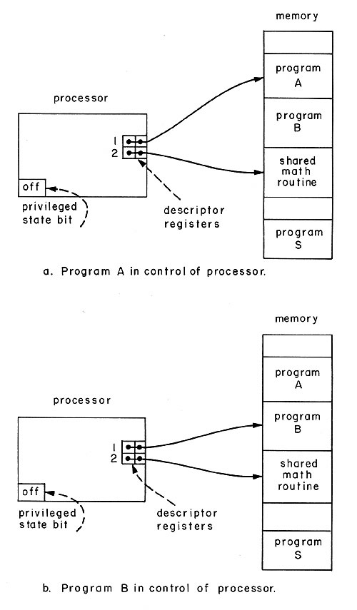 (a) Program A in control of processor. (b) Program B in control of processor.